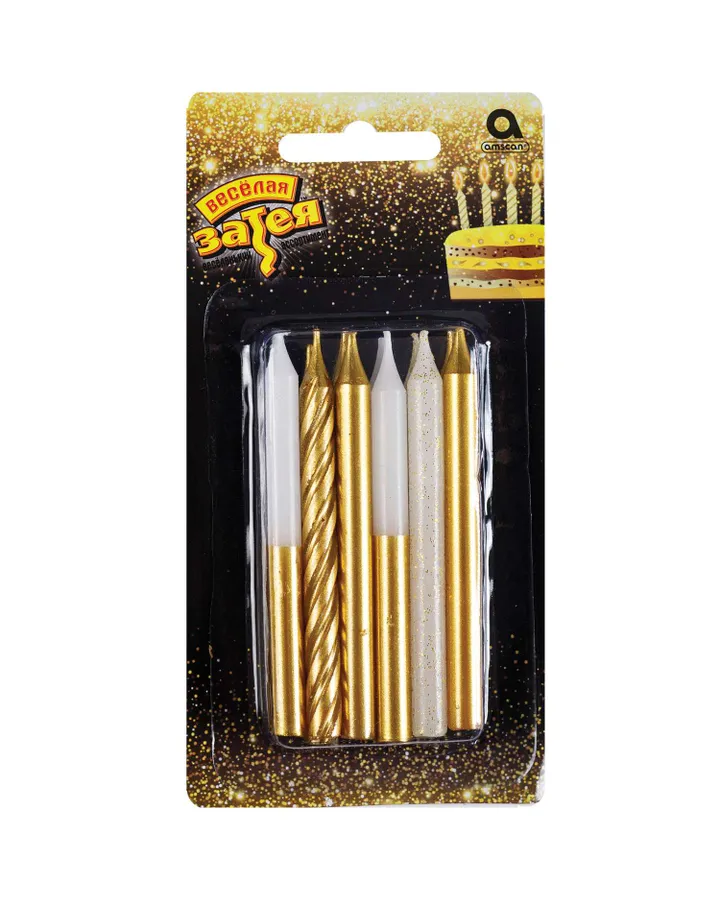- 4Свечи для торта Веселая затея с подставками 6см 24шт.