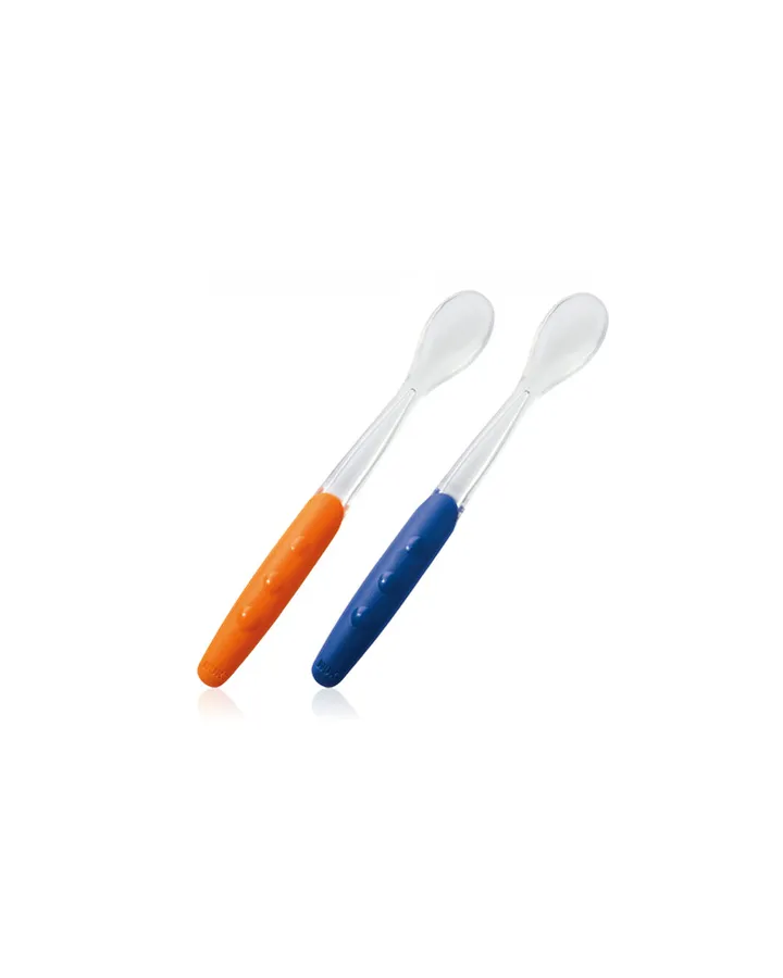 Ложка Nuk 2 предм. в ассортиментеТо что надо для первой ложки - черпается ни много ни мало, и по краям не выливается, и ручка длинная, не тычешь рукой в лицо ребёнка. так привыкла кормить ею что с другими неудобно
