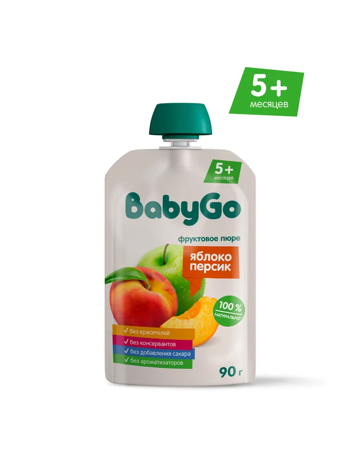 Пюре BabyGo Яблоко-персик с 5 мес 90 г