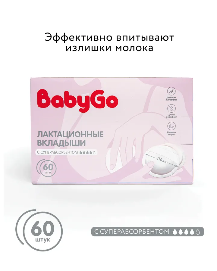 Вкладыши для груди BabyGo Суперабсорбент гелевые 60 шт.