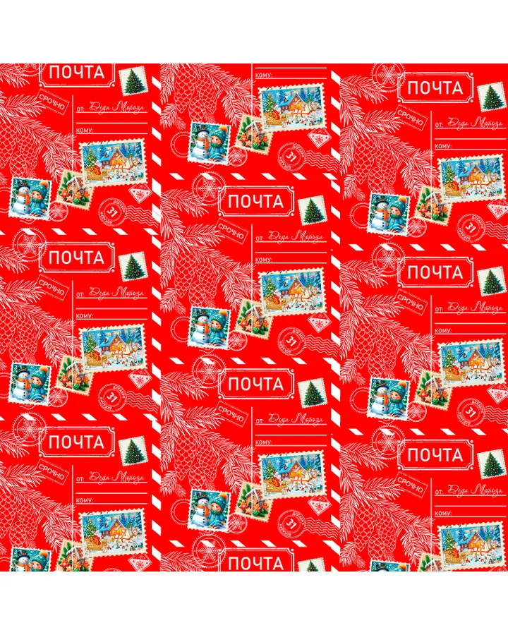 Бумага оберточная Феникс Презент новогодняя мелованная Почта Деда Мороза 100*70см 80г/м2 92100