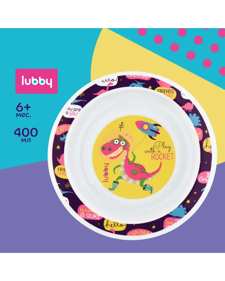 Тарелка Lubby 400 млТарелка на липучке,устойчива и передвинуть во время кормления детей,когда учится кушать удобно.