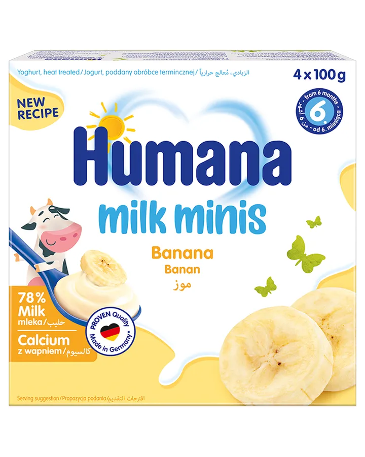 Десерт Humana молочный с бананом 100г*4шт с 8месяцевВкусный йогурт, малышка ест с удовольствием. Из всех вкусов, с бананом самый лучший.