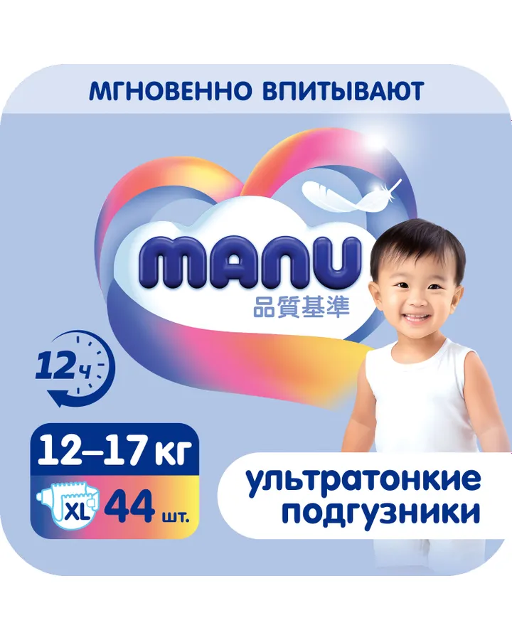 Подгузники MANU ультратонкие XL (12-16 кг) 44 шт.
