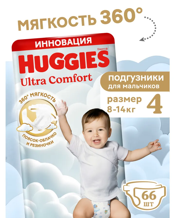 Подгузники Huggies Ultra Comfort для мальчиков 4 (8-14 кг) 66 шт.Самая офигенная линейка - это Haggis 🩵