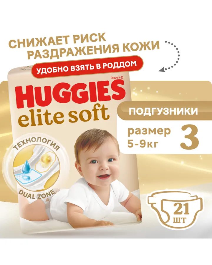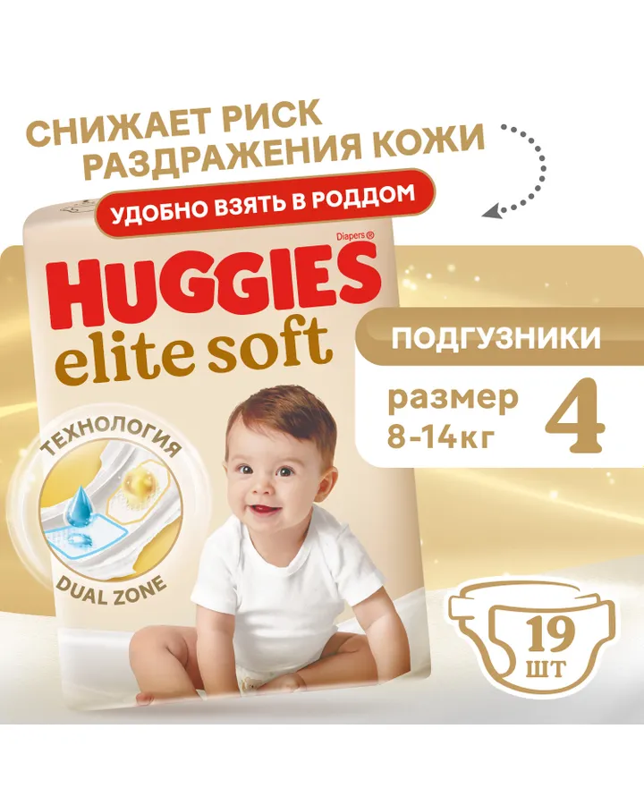 5Подгузники Huggies Elite Soft 4 (8-14 кг) 19 шт.В размер, очень мягкие, ни разу не протекли. Полностью оправдывают свою стоимость.