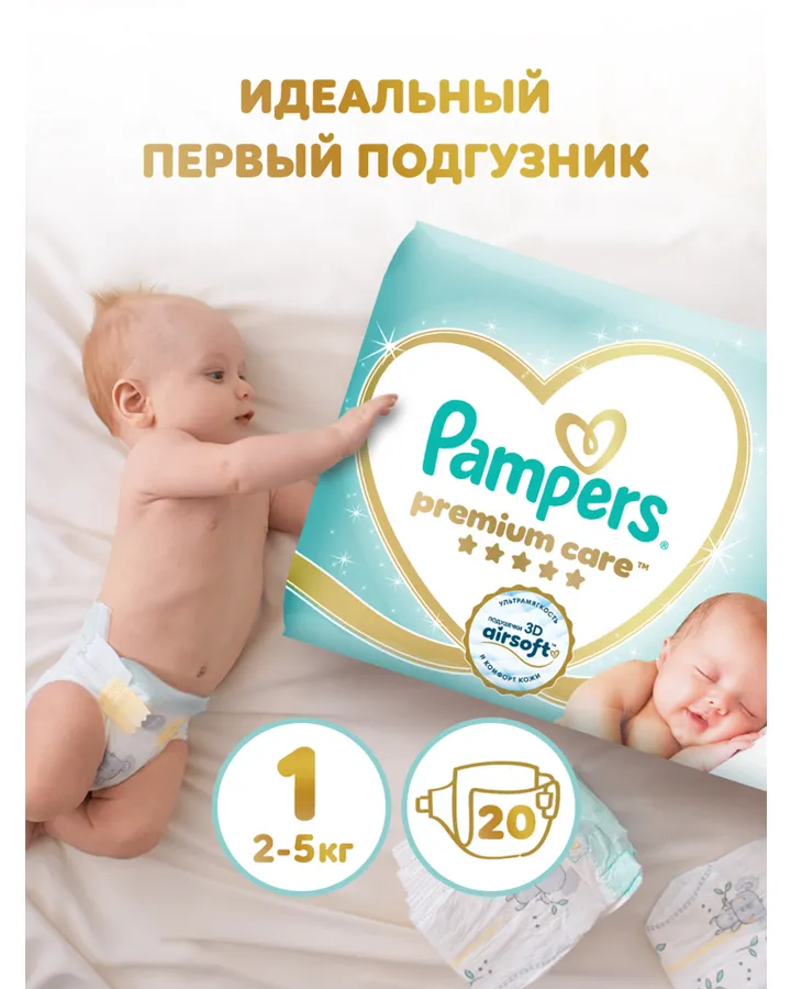 Подгузники Pampers Premium Care для новорожденных NB (2-5 кг) 20 шт.