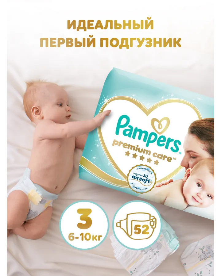 Подгузники Pampers Premium Care 3 (6-10 кг) 52 шт.
