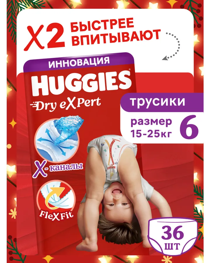 Трусики Huggies Dry eXpert 6 (15-25 кг) 36 шт.