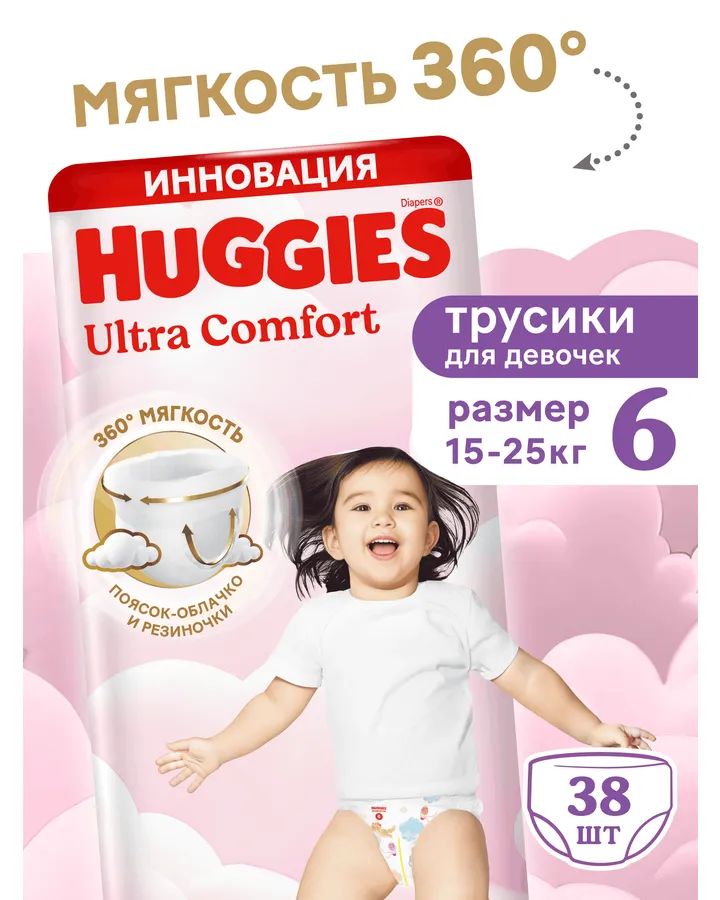 Трусики Huggies Ultra Comfort для девочек 6 (15-25 кг) 38 шт.
