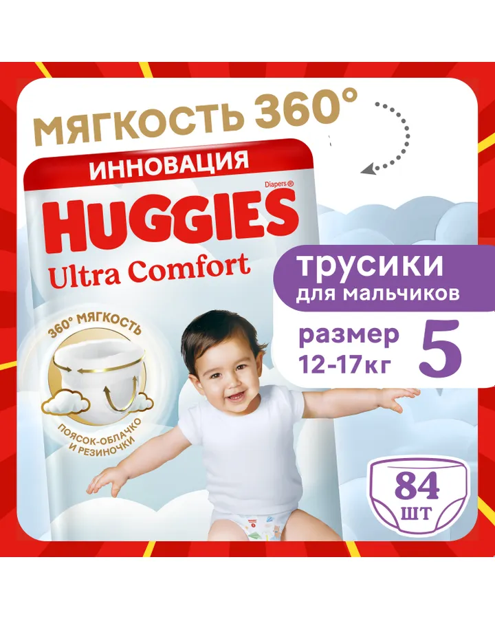 Трусики Huggies Ultra Comfort для мальчиков 5 (12-17) 84 шт.