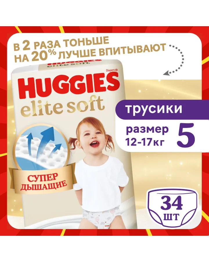 Трусики Huggies Elite Soft 5 (12-17 кг) 34 шт.