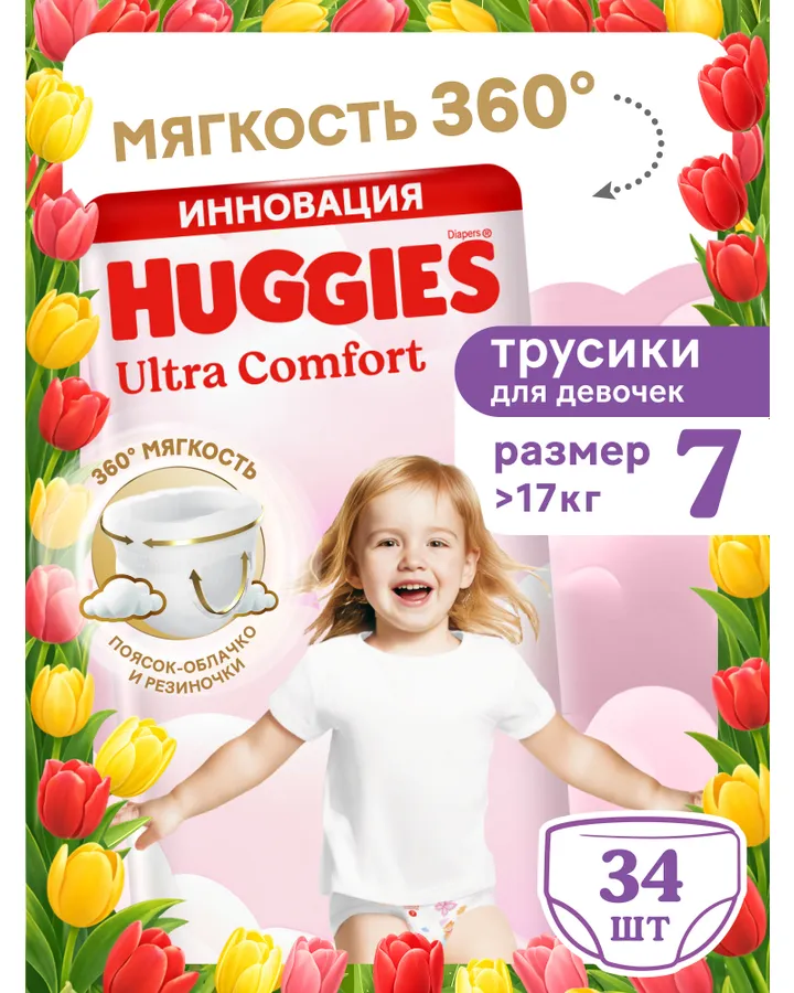 Трусики Huggies Ultra Comfort для девочек 7 (>17 кг) 34 шт.