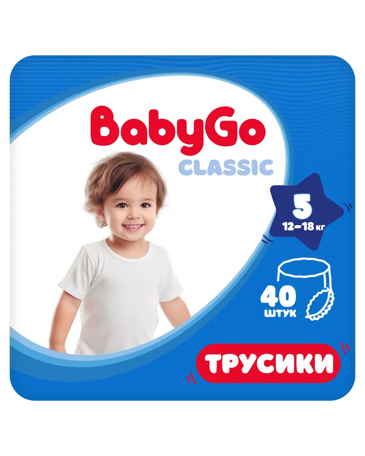 Трусики BabyGo Classic 5 (12-18 кг) 40 шт.