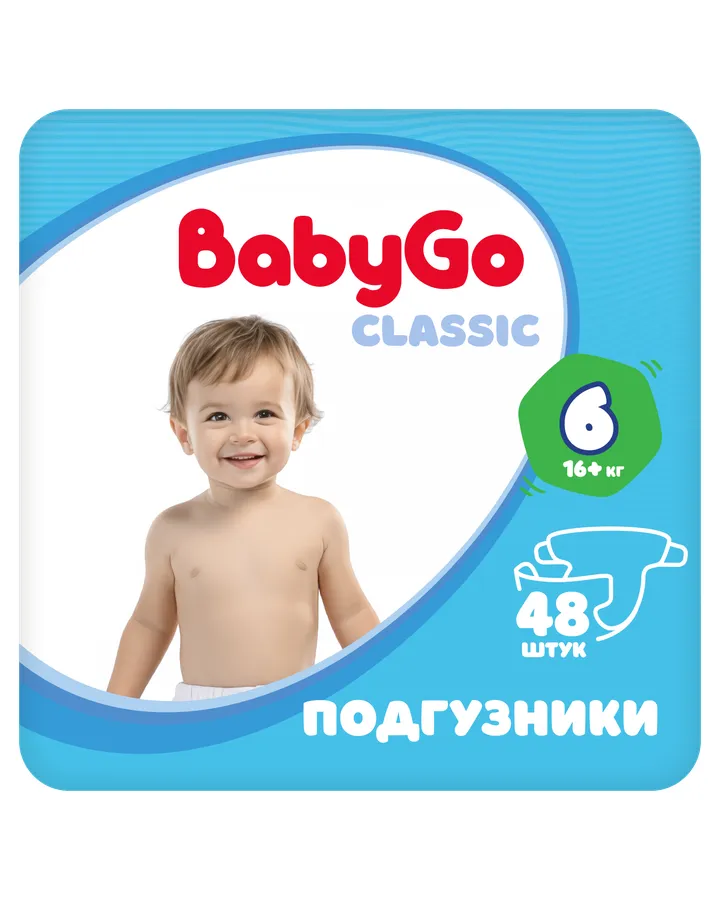 Подгузники BabyGo Classic 6 (16+ кг) 48 шт.