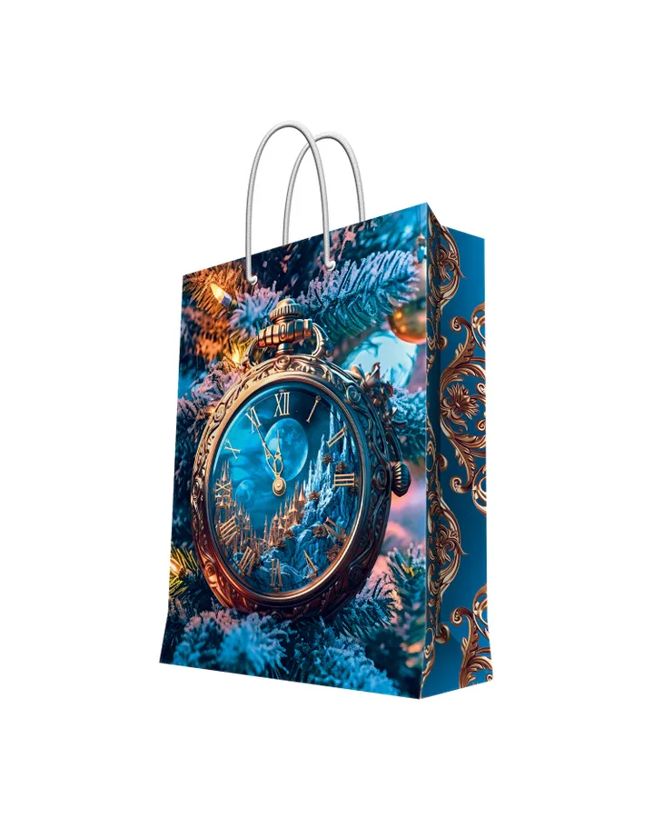 Пакет подарочный Феникс Презент новогодний с ламинацией Часы 33*45.7*10.2см 140г/м2 93143FE