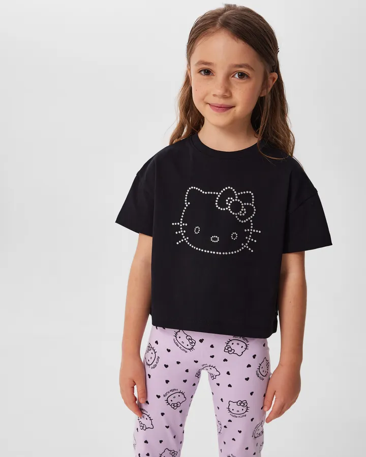 Футболка Hello KittyДочь выбрала сама, привлёк принт. Хорошего качества, на рост 152 взяли 164 размер, чтоб была по свободнее и длиннее.