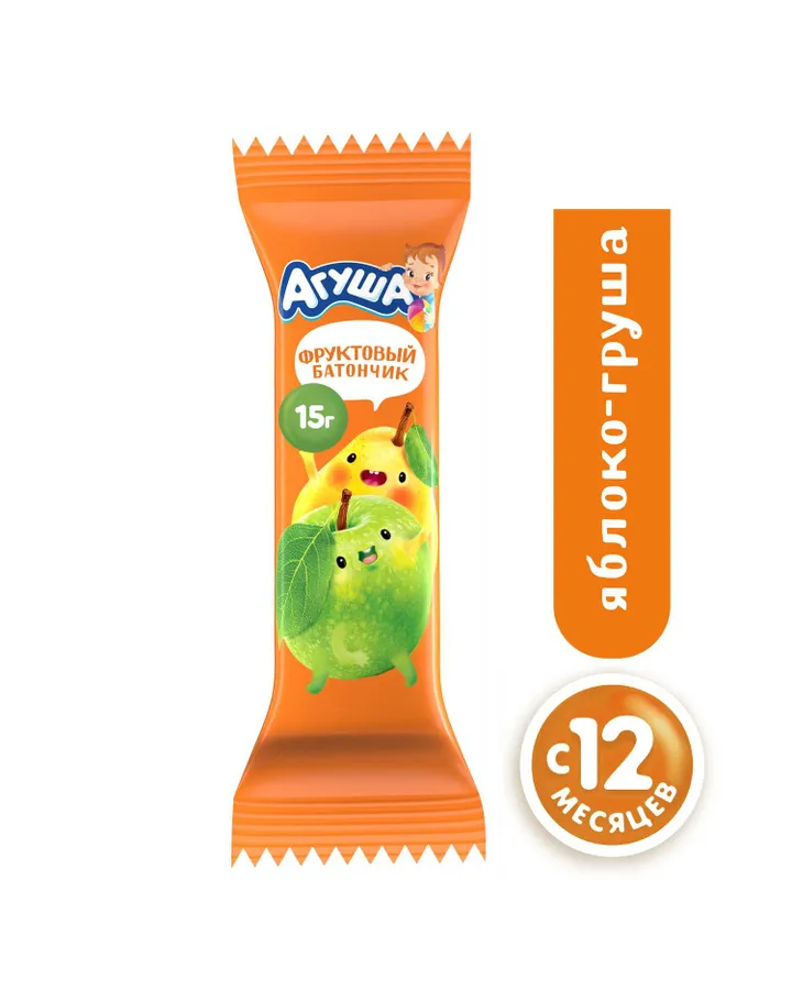 5Батончик Агуша Полезный перекус яблоко-груша 15г с 12месяцевВкусные, надеюсь что полезные )) дочка их обожает