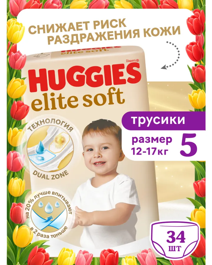 Трусики Huggies Elite Soft 5 (12-17 кг) 34 шт.