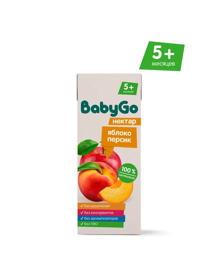 Нектар BabyGo Яблоко-персик с 5 мес 0.2 л