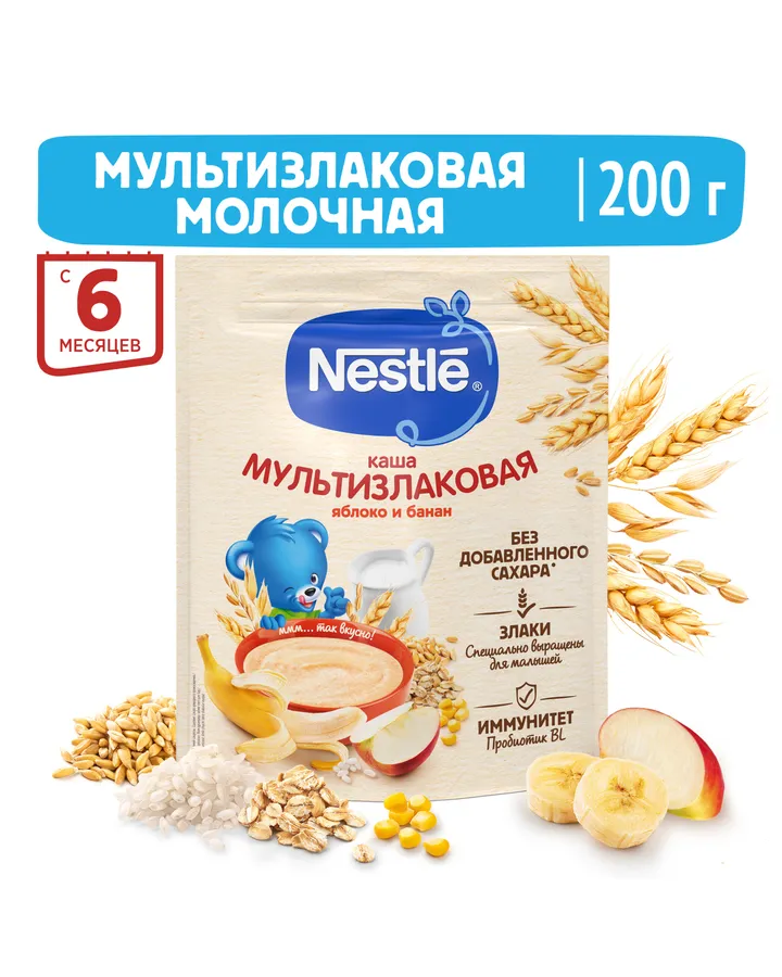 Каша молочная Nestle рисовая с яблоком 200г с 4месяцевХорошее