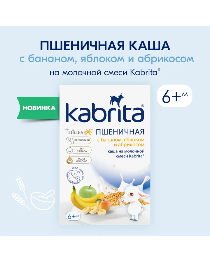 Каша Kabrita пшеничная на молочной смеси с бананом яблоком и абрикосом 180г с 6месяцев