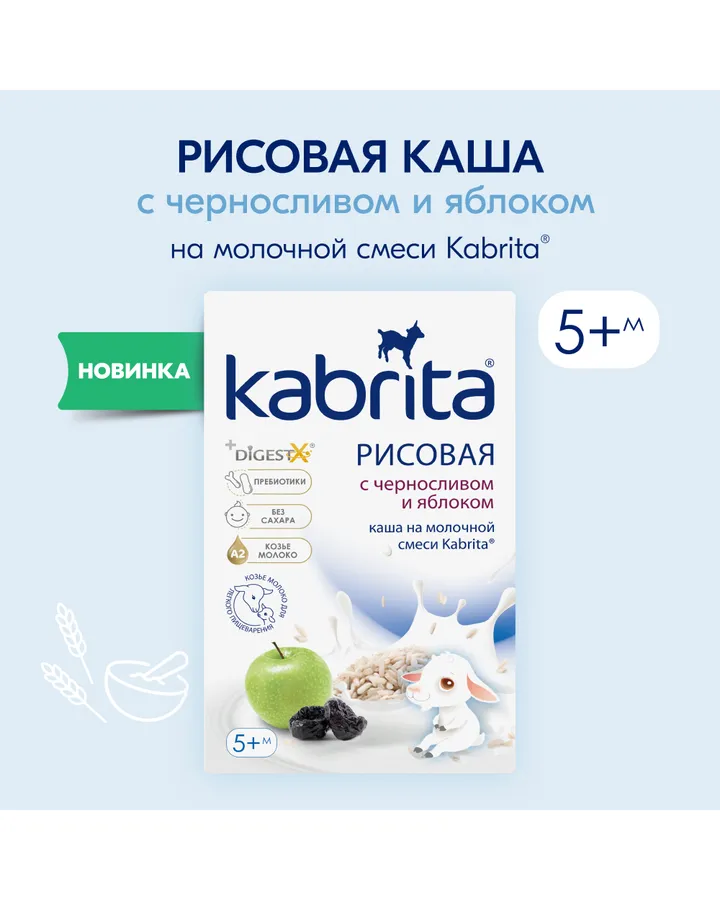 Каша Kabrita рисовая на молочной смеси с черносливом и яблоком 180г с 5месяцев