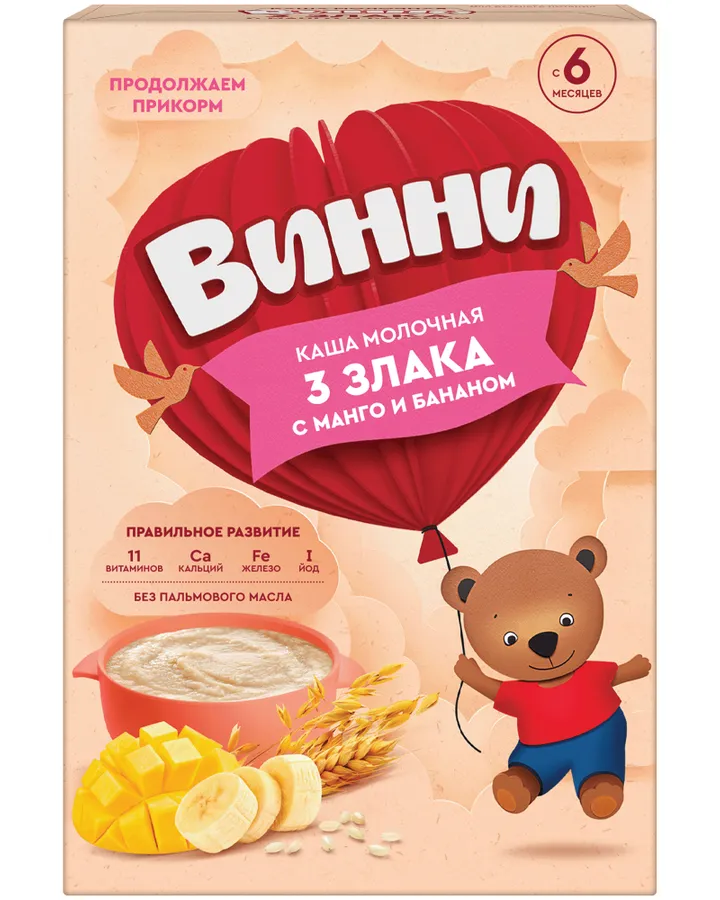 5Каша Винни молочная рисово-кукурузная с бананом 200г с 6месяцевВкусная каша