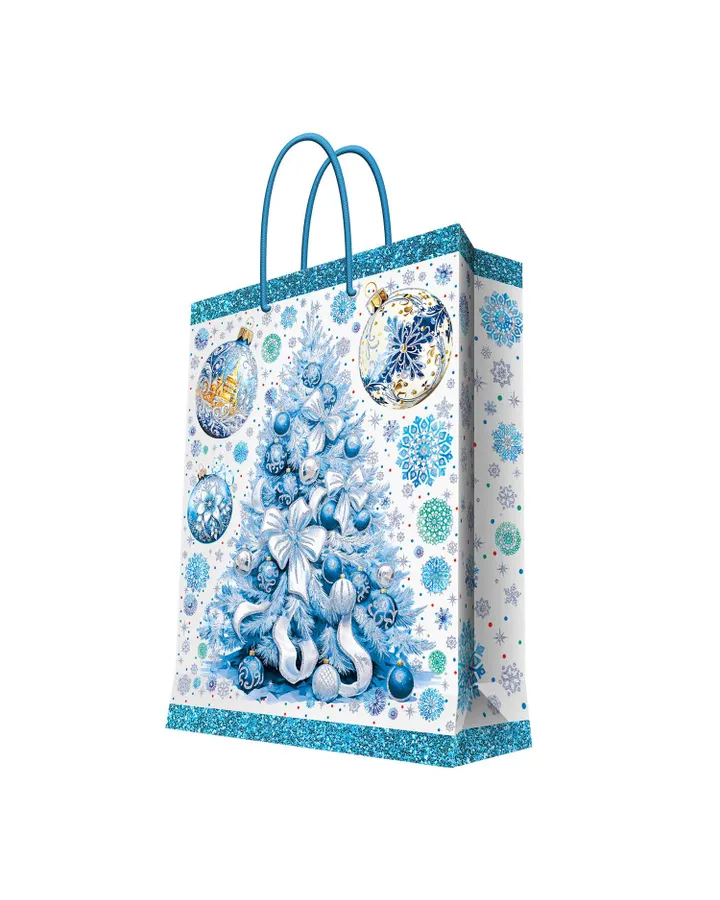 Пакет подарочный Феникс Презент новогодний с ламинацией Голубая ёлочка 26*32.4*12.7см 140г/м2 93075FE