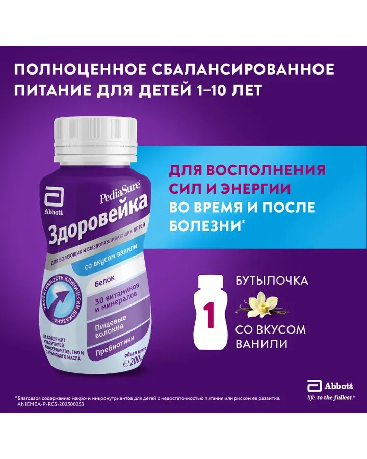 5Питание детское лечебное PediaSure Здоровейка для болеющих детей ваниль 200мл с 12месяцевРебенок любит