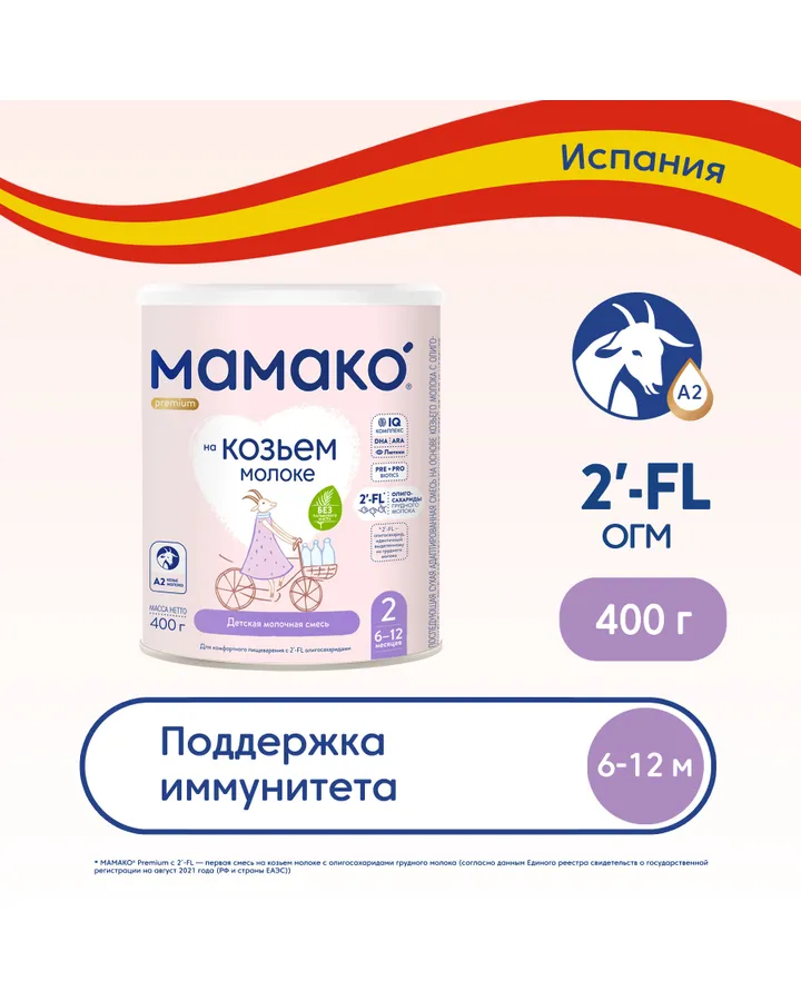 Смесь Мамако 2 Premium на козьем молоке 400г с 6месяцев