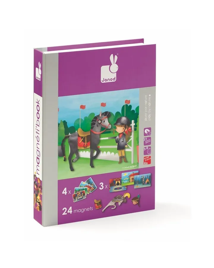 Магнитная игра Janod Лошадки 24 магнита, 8 моделей, 4 пейзажа