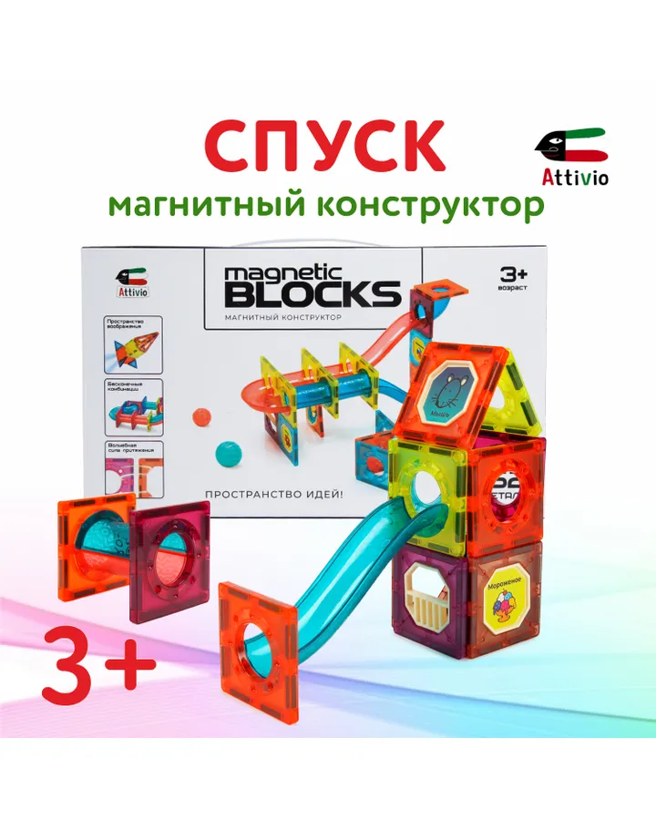 Конструктор Attivio Горки со светом магнитный 106 дет.Покупаем уже второй такой конструктор и ребёнок просит еще и еще. Очень нравится строить большие башни и горки. Качественный, магниты держат хорошо.