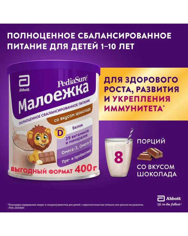 Питание детское сбалансированное PediaSure Малоежка шоколад 400г с 12месяцев