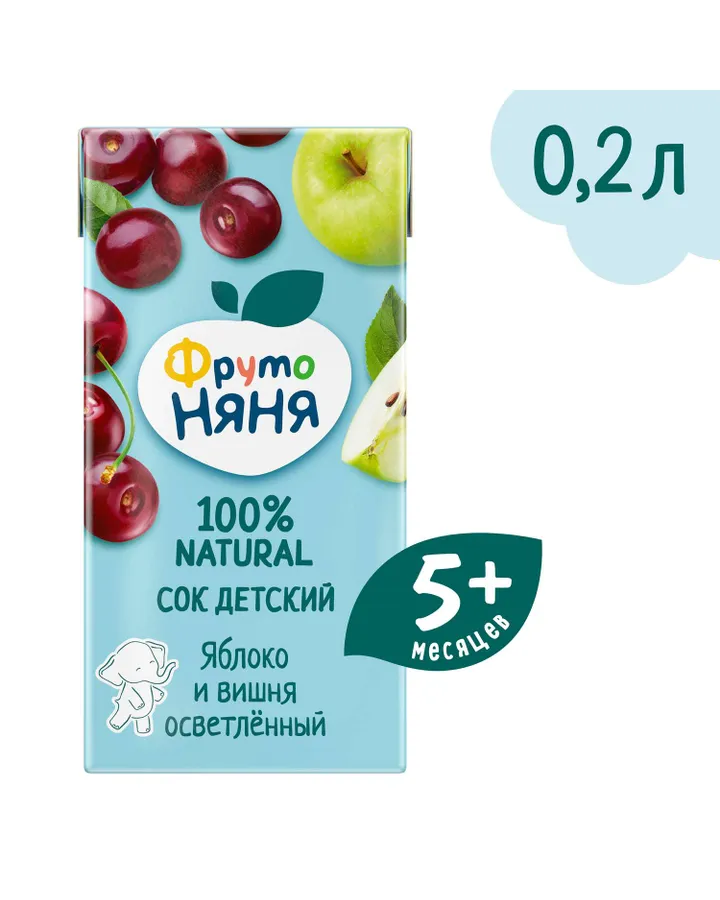 Сок ФрутоНяня Яблоко-Вишня с 5 мес 0.2 л