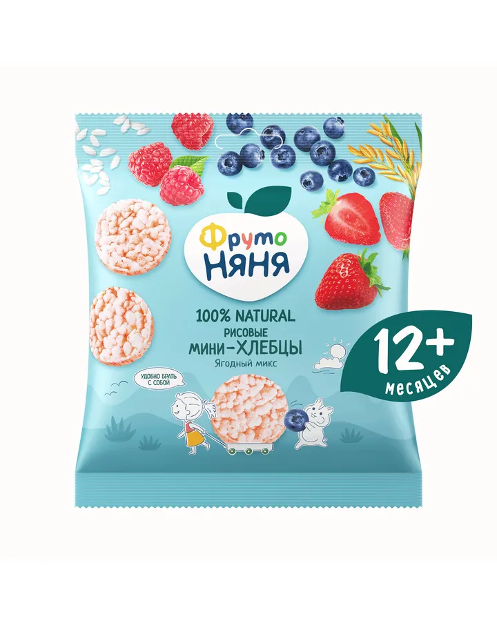 Мини-хлебцы ФрутоНяня рисовые с яблоком клубникой черникой и малиной Ягодный микс 30г