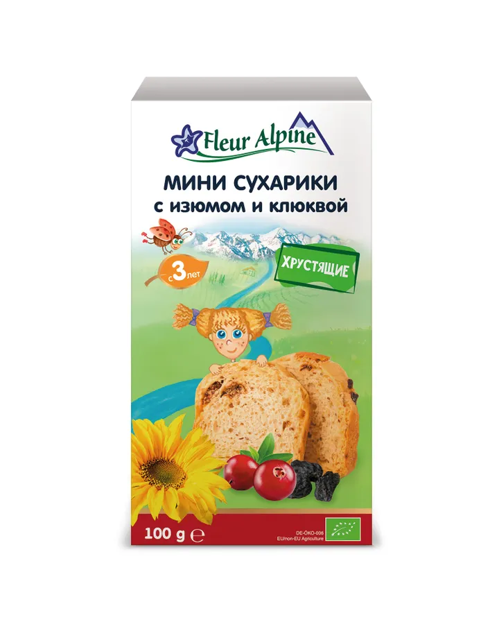 Сухарики Fleur Alpine Органик мини изюм-клюква 100г с 3лет