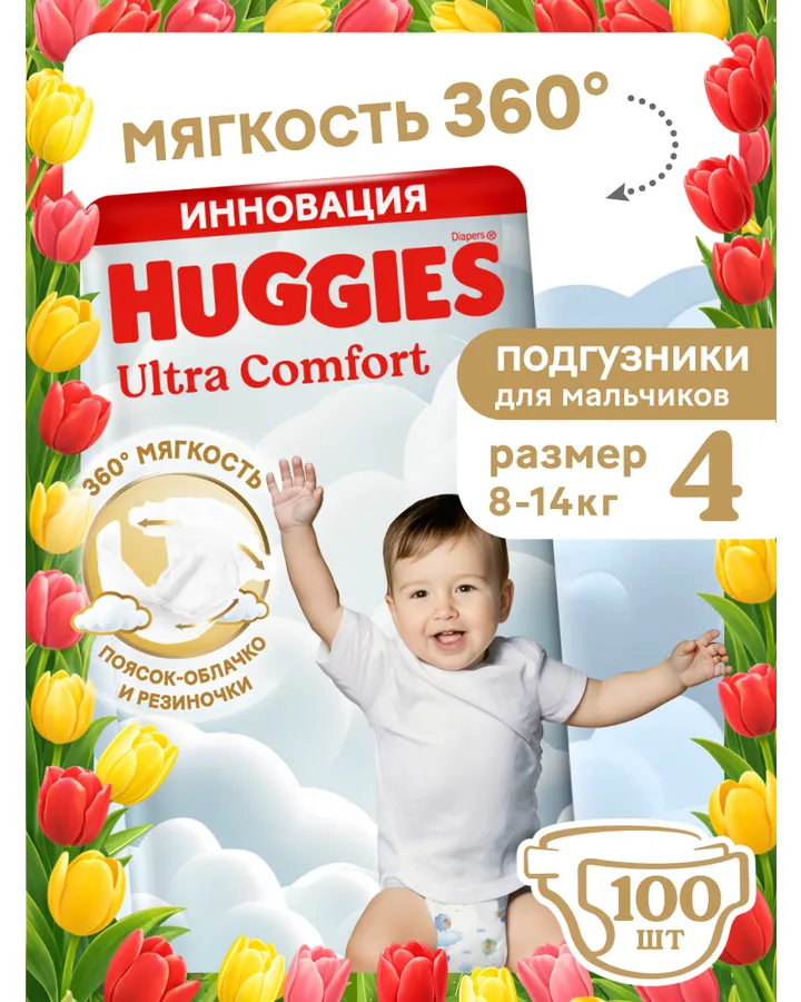 Подгузники Huggies Ultra Comfort для мальчиков 4 (8-14 кг) 100 шт.
