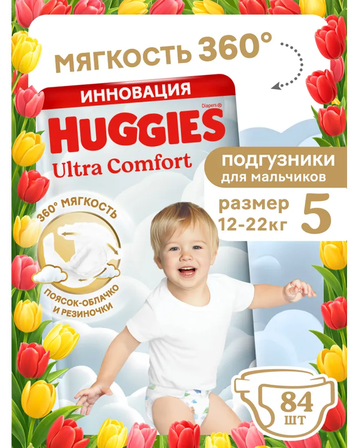 Подгузники Huggies Ultra Comfort для мальчиков 5 (12-22 кг) 84 шт.