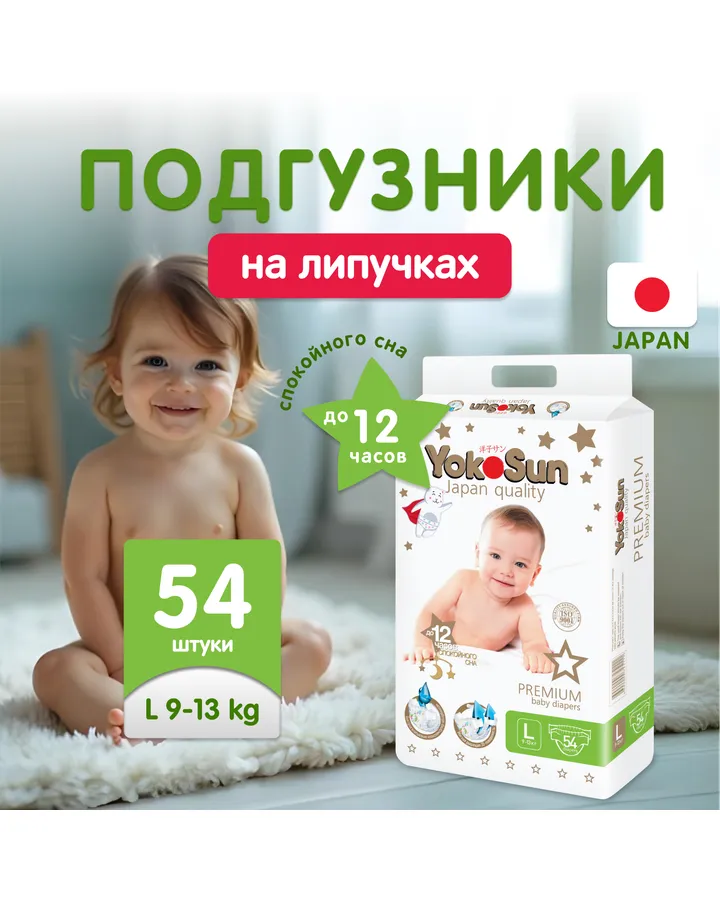 Подгузники YokoSun Premium L (9-13 кг) 54 шт.