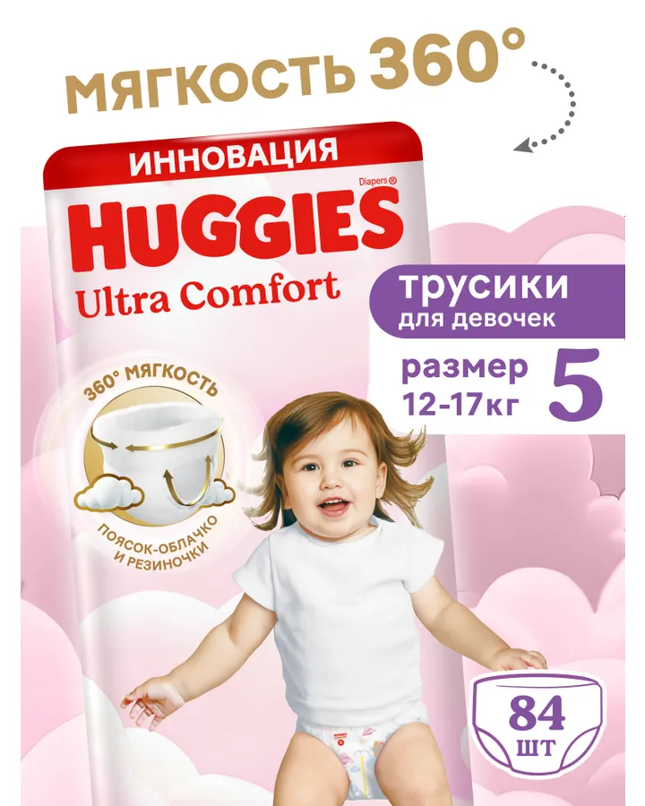 Трусики Huggies Ultra Comfort для девочек 5 (12-17 кг) 84 шт.
