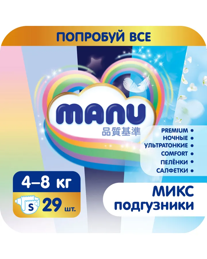 Подгузники MANU Микс S (4-8 кг) 29 шт.