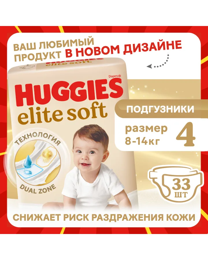 Подгузники Huggies Elite Soft 4 (8-14 кг) 33 шт.