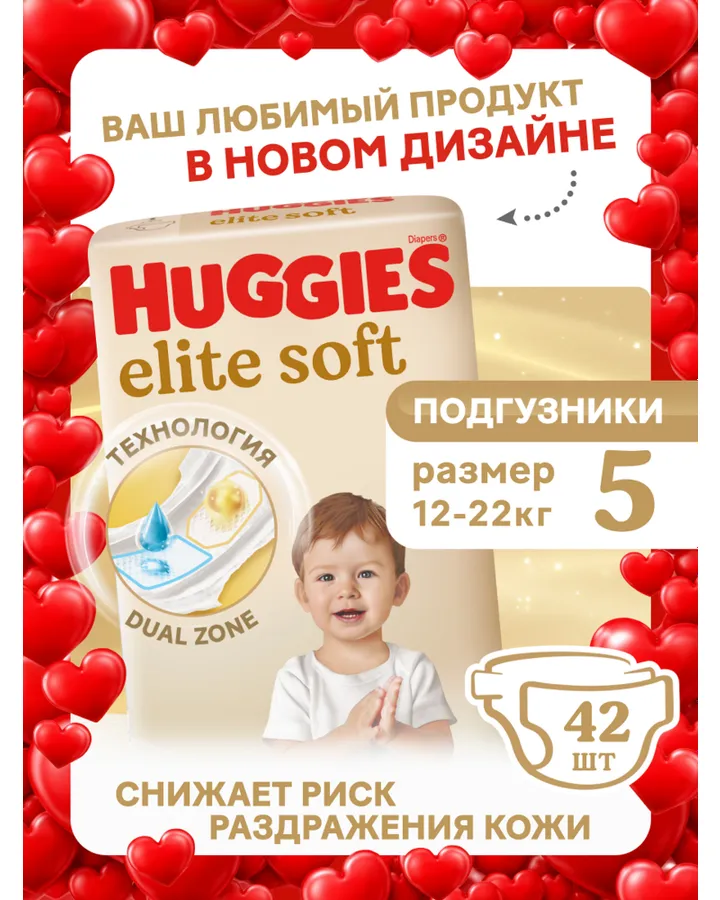 Подгузники Huggies Elite Soft 5 (12-22 кг) 42 шт.