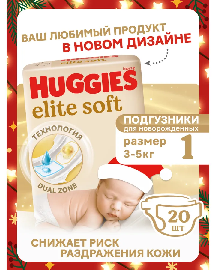 Подгузники Huggies Elite Soft для новорожденных 1 (3-5 кг) 20 шт.Суперские, но дороговатые