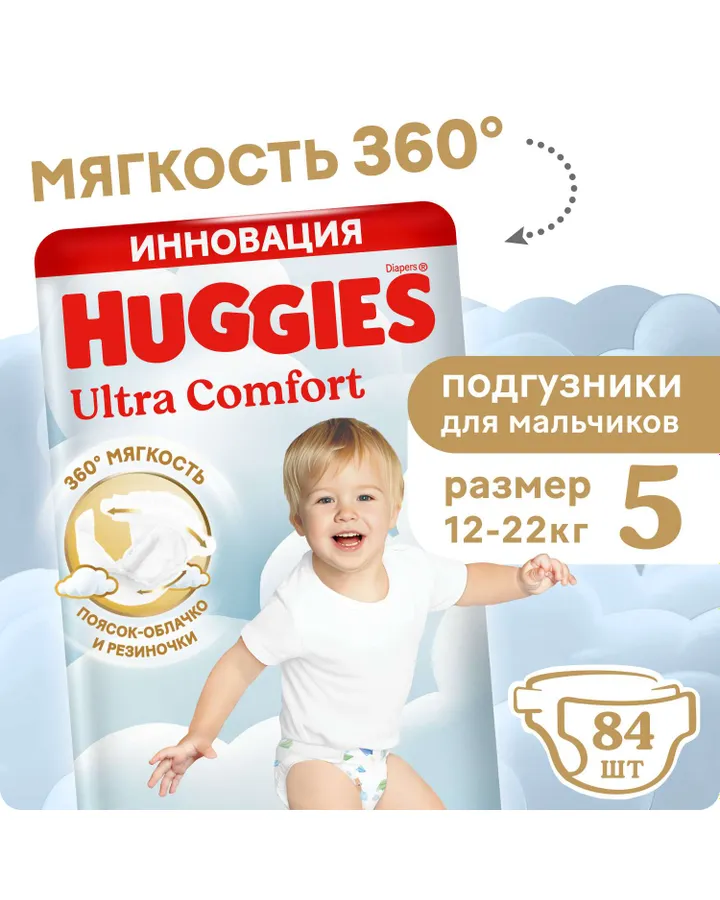 Подгузники Huggies Ultra Comfort для мальчиков 5 (12-22 кг) 84 шт.
