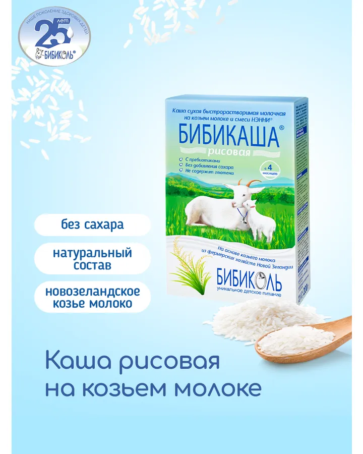 Каша Бибиколь на козьем молоке рисовая 200г с 4 мес