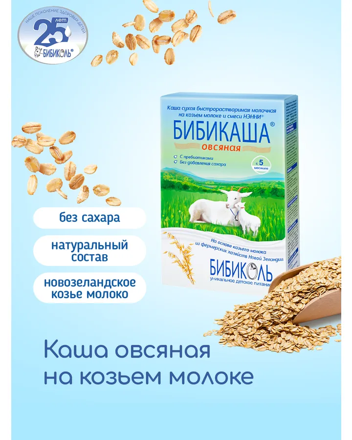 Каша Бибиколь БибиКаша овсяная козье молоко 200г с 5месяцев