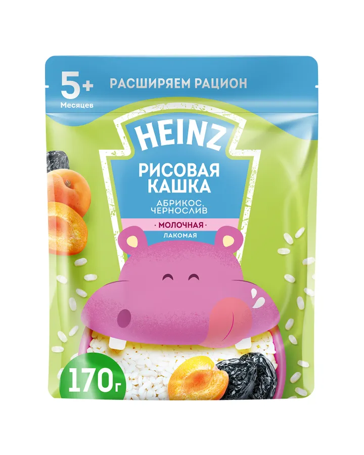 Каша Heinz Лакомая рисовая абрикос-чернослив 170г с 5месяцев