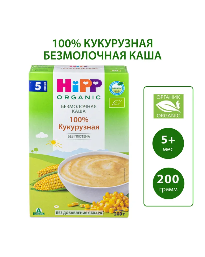 Каша Hipp безмолочная кукуруза 200г с 5месяцев